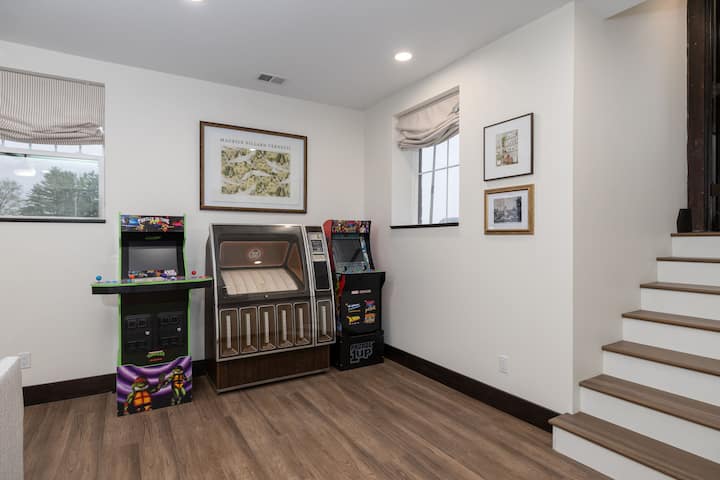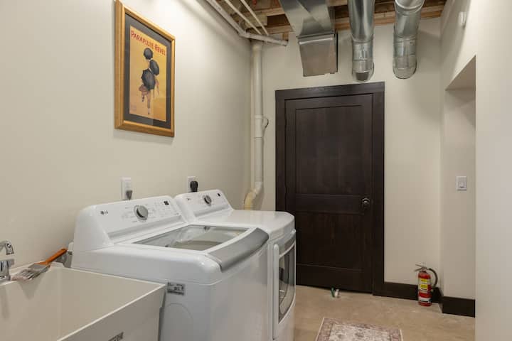 Parking allows for about 5-6 cars. Washer and dryer are available in the house. Back deck has a large table and chairs for outdoor dining, Fire pit with 8 chairs, board games available inside and a TV in almost every room!