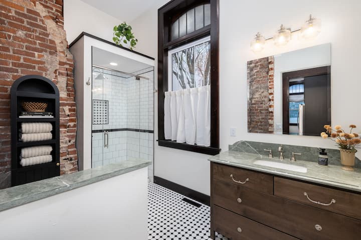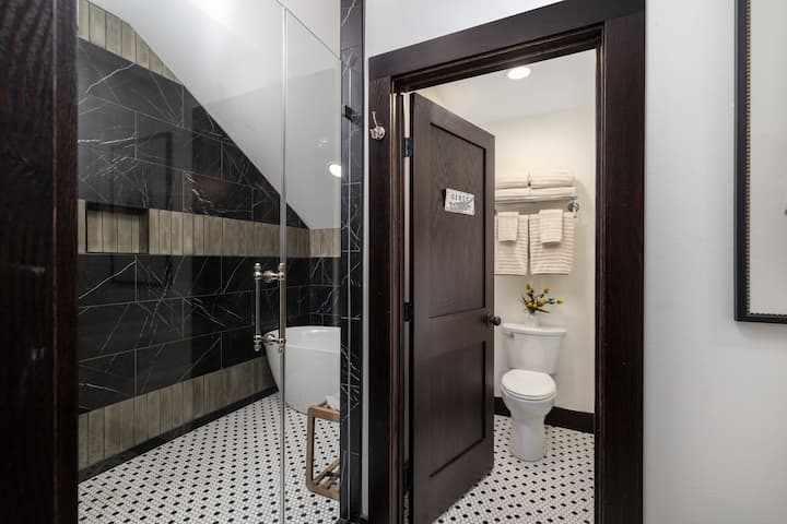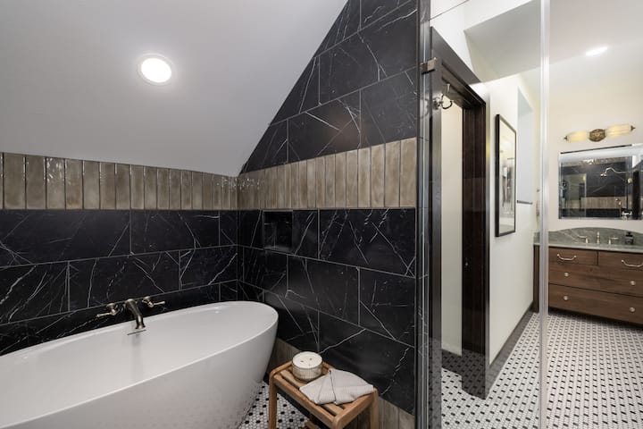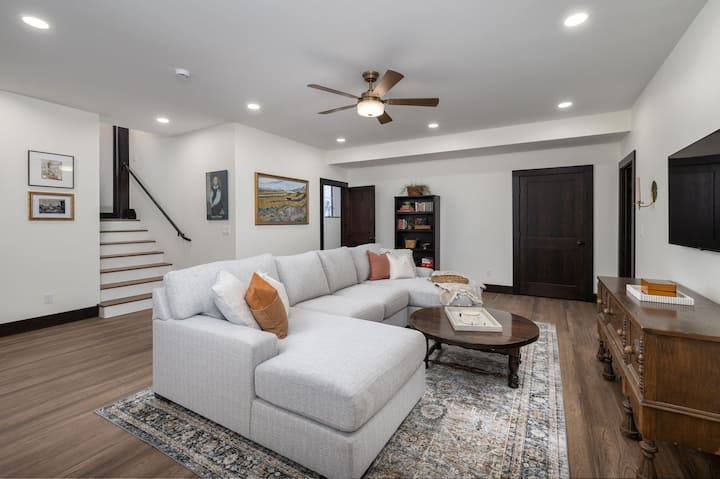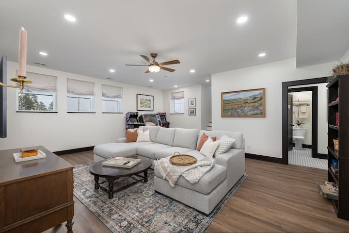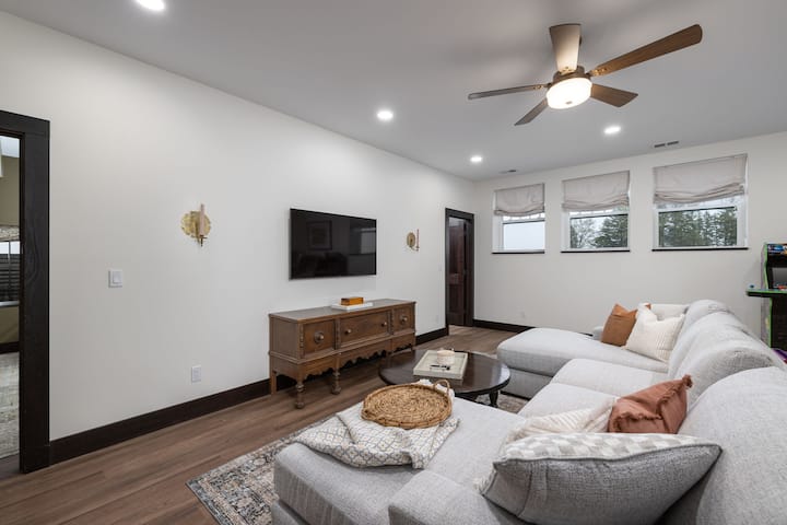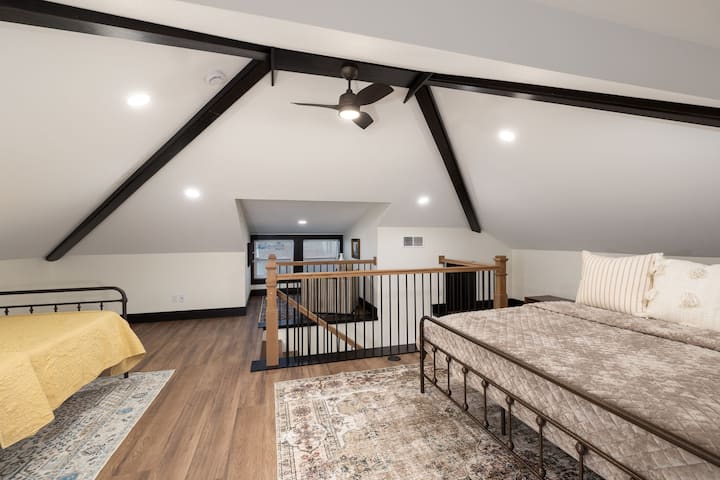 Beds can sleep 7 guests with additional options for guests to sleep on 2 oversized couches if needed.