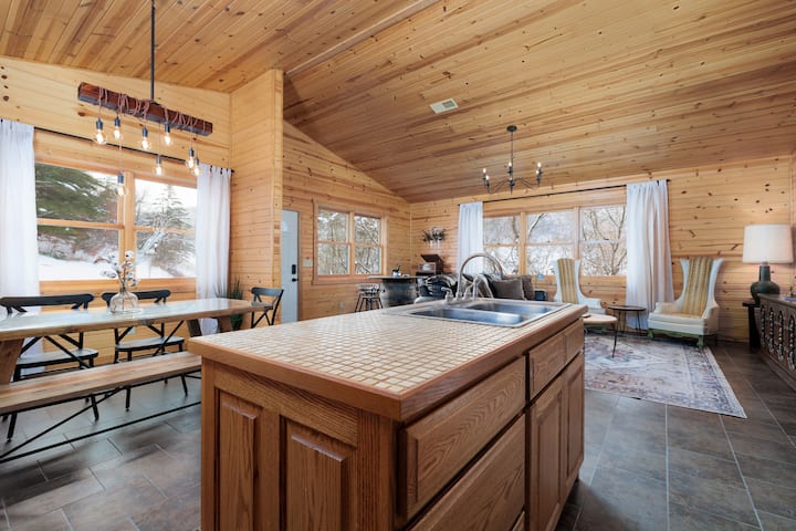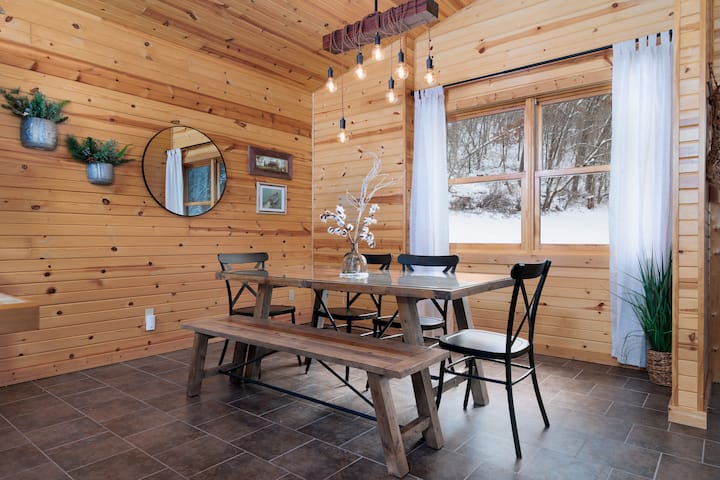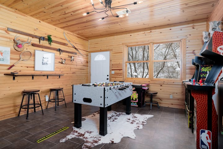 The Cattle Valley Lodge has a little something for everyone. Open concept for entertaining, high vaulted ceilings, arcade room with Ms. Pac-Man, NBA Jam, Golden Tee Golf, Street Fighter 2, darts and foosball. Board games and other video game options available as well. Hot tub right off the house on patio and open year round. Fire pit and view of the valley offers ultimate relaxation when needed. 4 beds sleep up to 8. Additional air mattress is available, along with 2 folding cots with mattresses. Yard is plenty big to enjoy outdoor games if you would like to bring your own.
